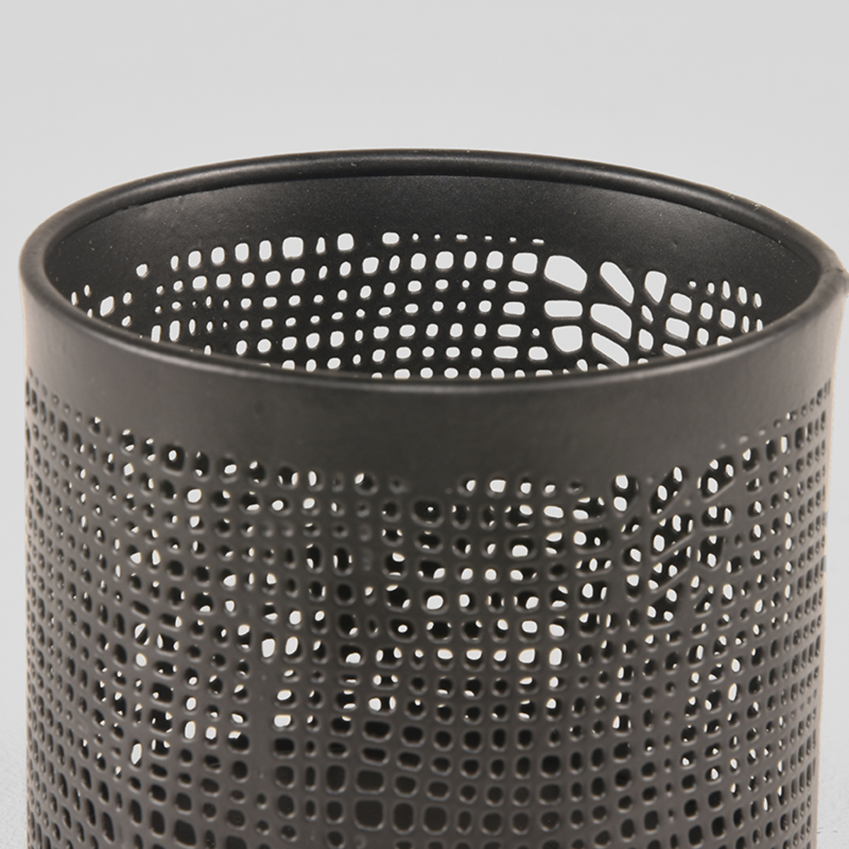 Set Kaarsenhouders L van LABEL51 bestaat uit twee formaten van zwart metaal. De Kaarsenhouders L zijn mooi opengewerkt. Het patroon is geïnspireerd op de structuur van grof geweven jute. Deze opengewerkte structuur geeft een prachtige, romantische lichtspreiding. Maar ook zonder kaars is de set een lust voor het oog.